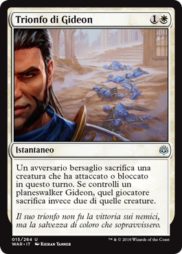 | Rules | Target opponent sacrifices a creature that attacked or blocked this turn. If you control a Gideon planeswalker, that player sacrifices two of those creatures instead. |