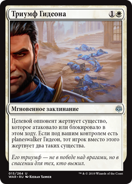 | Rules | Target opponent sacrifices a creature that attacked or blocked this turn. If you control a Gideon planeswalker, that player sacrifices two of those creatures instead. |