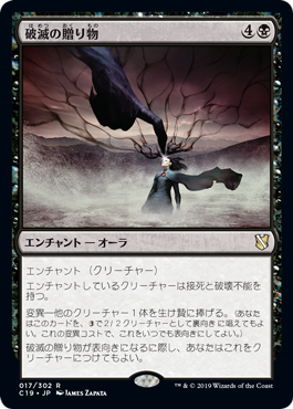| Rules | Enchant creature Enchanted creature has deathtouch and indestructible. Morph—Sacrifice another creature. (You may cast this card face down as a 2/2 creature for . Turn it face up any time for its morph cost.) As Gift of Doom is turned face up, you may attach it to a creature. |