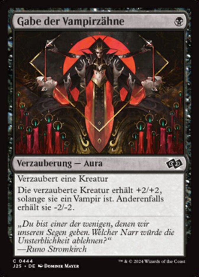 | Rules | Enchant creature Enchanted creature gets +2/+2 as long as it's a Vampire. Otherwise, it gets -2/-2. |