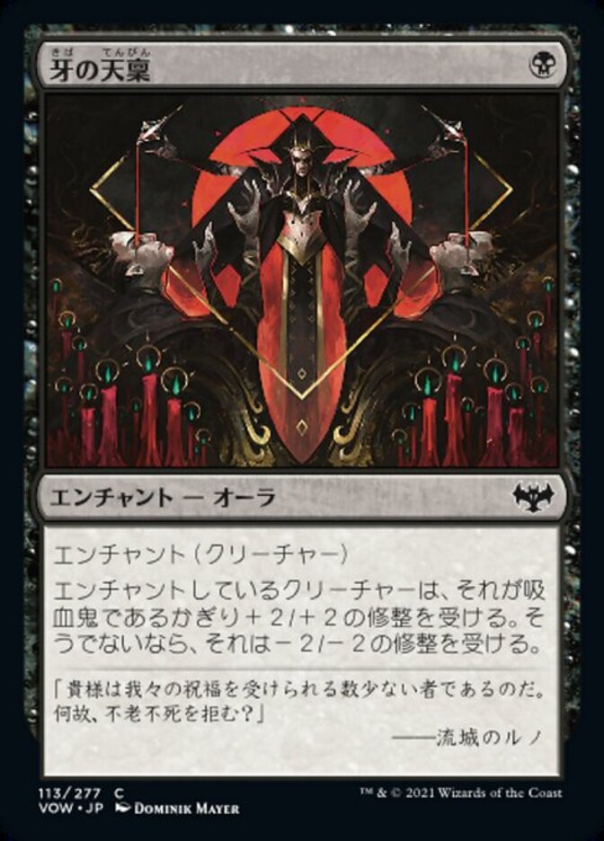 | Rules | Enchant creature Enchanted creature gets +2/+2 as long as it's a Vampire. Otherwise, it gets -2/-2. |