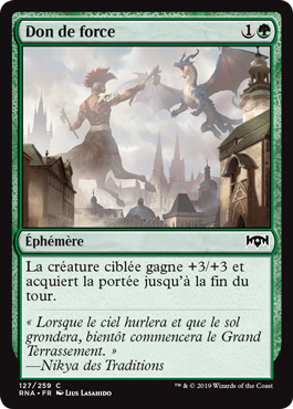 | Rules | Target creature gets +3/+3 and gains reach until end of turn. |