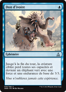 | Rules | Until end of turn, target creature loses all abilities and becomes a green Elephant with base power and toughness 3/3. |
