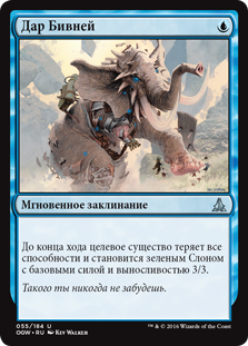 | Rules | Until end of turn, target creature loses all abilities and becomes a green Elephant with base power and toughness 3/3. |