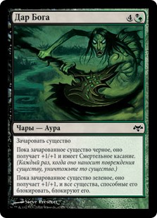 | Rules | Enchant creature As long as enchanted creature is black, it gets +1/+1 and has deathtouch. (Any amount of damage it deals to a creature is enough to destroy that creature.) As long as enchanted creature is green, it gets +1/+1 and all creatures able to block it do so. |