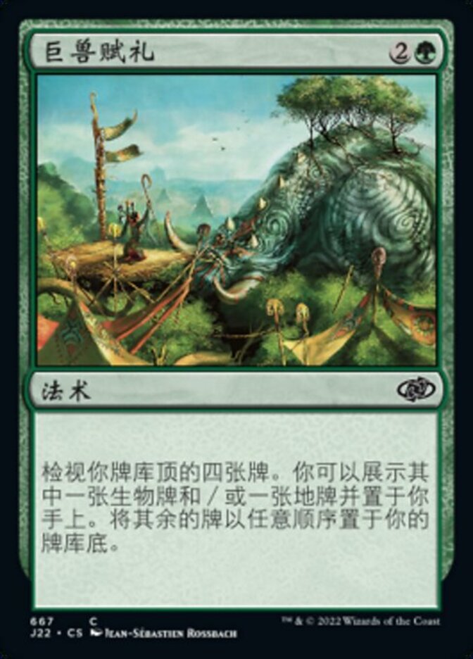 | Rules | Look at the top four cards of your library. You may reveal a creature card and/or a land card from among them and put the revealed cards into your hand. Put the rest on the bottom of your library in any order. |