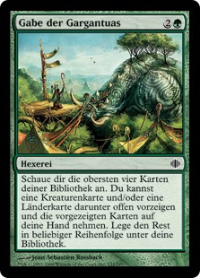 | Rules | Look at the top four cards of your library. You may reveal a creature card and/or a land card from among them and put the revealed cards into your hand. Put the rest on the bottom of your library in any order. |
