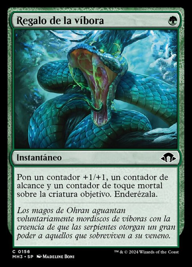 | Rules | Put a +1/+1 counter, a reach counter, and a deathtouch counter on target creature. Untap it. |