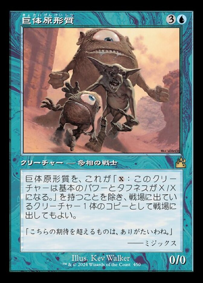 | Rules | You may have Gigantoplasm enter the battlefield as a copy of any creature on the battlefield, except it has ": This creature has base power and toughness X/X." |