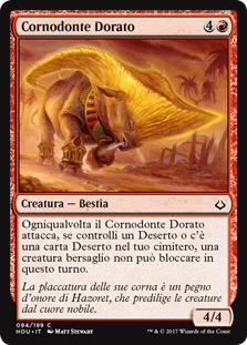 | Rules | Whenever Gilded Cerodon attacks, if you control a Desert or there is a Desert card in your graveyard, target creature can't block this turn. |