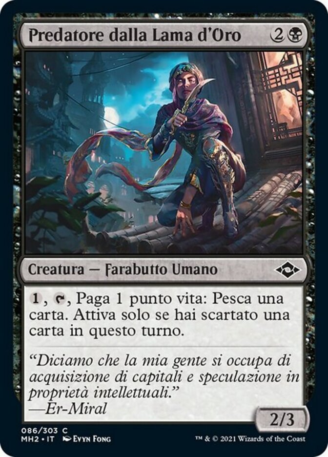 Languages Gilt-Blade Prowler Espreitador da Lâmina d'Ouro 光り刃のうろつく者 금박칼 배회자 Predatore dalla Lama d'Oro 金刃遊掠者 Goldklingenschleicher Грабитель Золоченого Клинка Rondador filodorado Rôdeur à la lame dorée 金刃游掠者