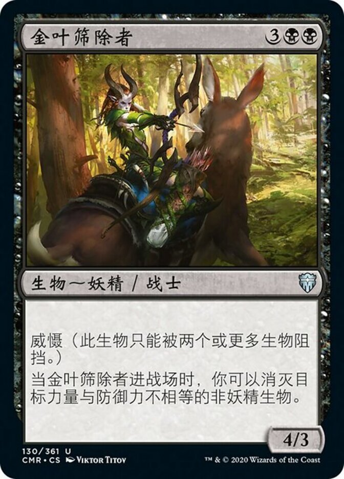 | Rules | Menace (This creature can't be blocked except by two or more creatures.) When Gilt-Leaf Winnower enters the battlefield, you may destroy target non-Elf creature whose power and toughness aren't equal. |