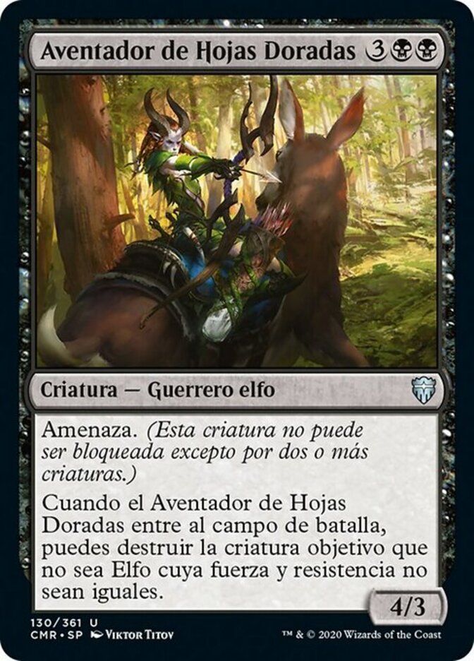| Rules | Menace (This creature can't be blocked except by two or more creatures.) When Gilt-Leaf Winnower enters the battlefield, you may destroy target non-Elf creature whose power and toughness aren't equal. |