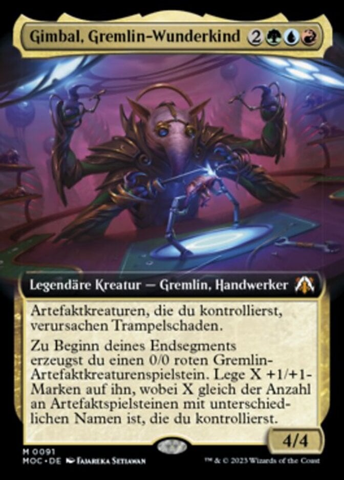 | Rules | Artifact creatures you control have trample. At the beginning of your end step, create a 0/0 red Gremlin artifact creature token. Put X +1/+1 counters on it, where X is the number of differently named artifact tokens you control. |