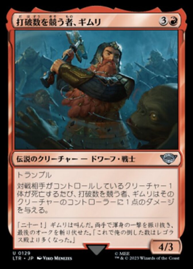 | Rules | Trample Whenever a creature an opponent controls dies, Gimli, Counter of Kills deals 1 damage to that creature's controller. |