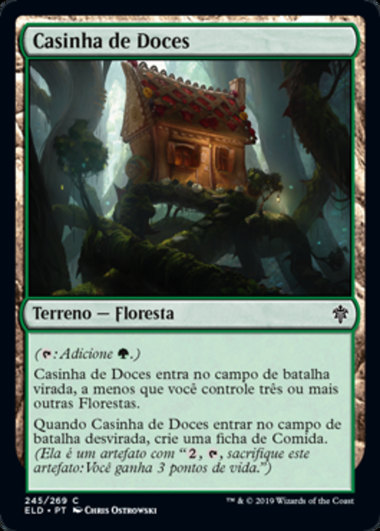 | Rules | (: Add .) Gingerbread Cabin enters the battlefield tapped unless you control three or more other Forests. When Gingerbread Cabin enters the battlefield untapped, create a Food token. (It's an artifact with ", , Sacrifice this artifact: You gain 3 life.") |