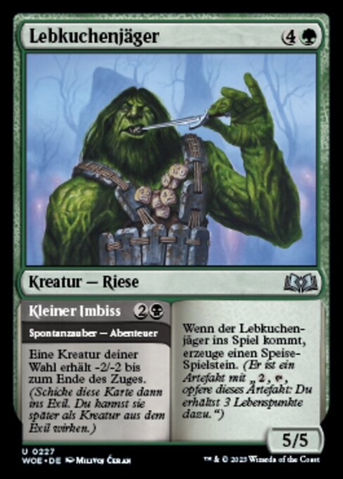 | Rules | When Gingerbread Hunter enters the battlefield, create a Food token. (It's an artifact with ", , Sacrifice this artifact: You gain 3 life.") // Target creature gets -2/-2 until end of turn. (Then exile this card. You may cast the creature later from exile.) |