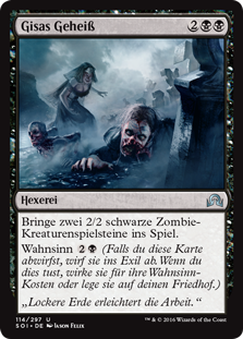 | Rules | Create two 2/2 black Zombie creature tokens. Madness (If you discard this card, discard it into exile. When you do, cast it for its madness cost or put it into your graveyard.) |