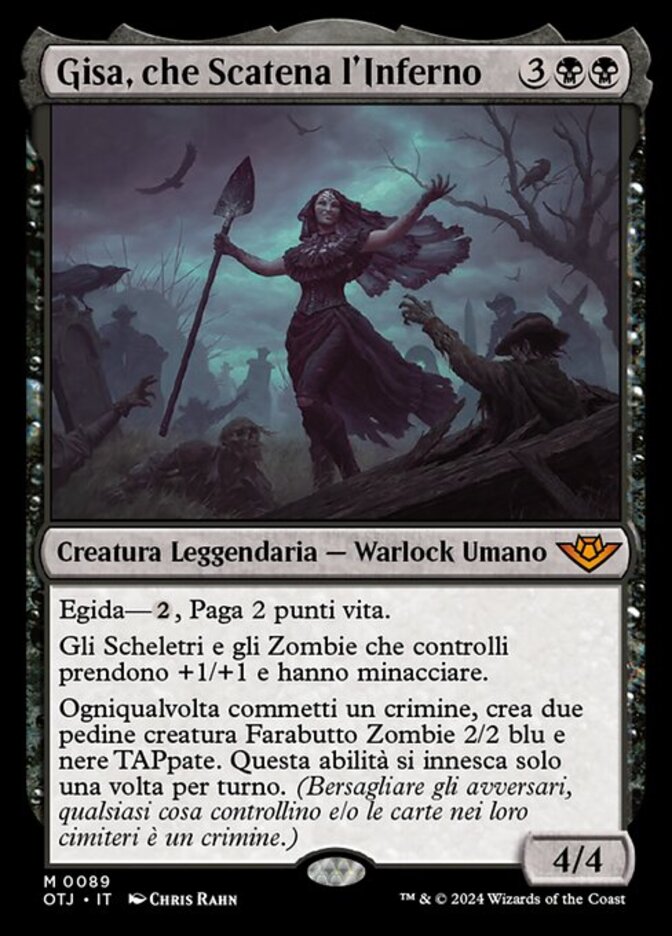 | Rules | Ward—, Pay 2 life. Skeletons and Zombies you control get +1/+1 and have menace. Whenever you commit a crime, create two tapped 2/2 blue and black Zombie Rogue creature tokens. This ability triggers only once each turn. (Targeting opponents, anything they control, and/or cards in their graveyards is a crime.) |