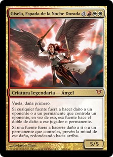| Rules | Flying, first strike If a source would deal damage to an opponent or a permanent an opponent controls, that source deals double that damage to that player or permanent instead. If a source would deal damage to you or a permanent you control, prevent half that damage, rounded up. |