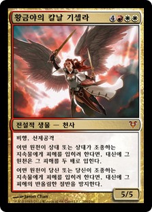| Rules | Flying, first strike If a source would deal damage to an opponent or a permanent an opponent controls, that source deals double that damage to that player or permanent instead. If a source would deal damage to you or a permanent you control, prevent half that damage, rounded up. |