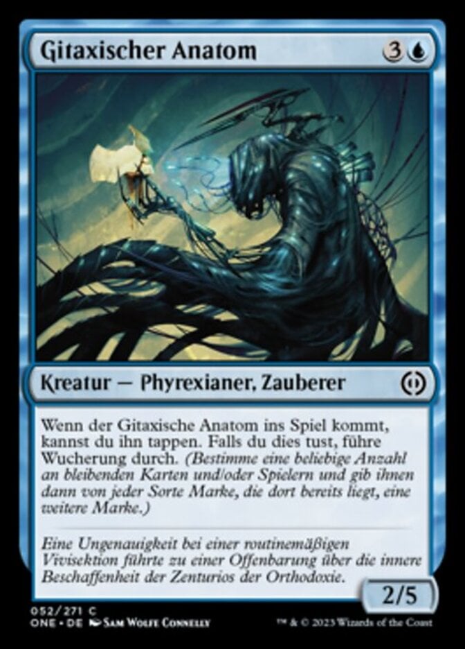 | Rules | When Gitaxian Anatomist enters the battlefield, you may tap it. If you do, proliferate. (Choose any number of permanents and/or players, then give each another counter of each kind already there.) |