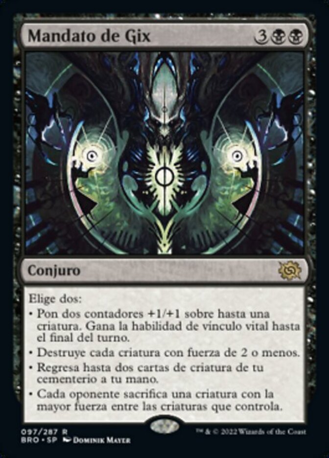 | Rules | Choose two — • Put two +1/+1 counter on up to one creature. It gains lifelink until end of turn. • Destroy each creature with power 2 or less. • Return up to two creature cards from your graveyard to your hand. • Each opponent sacrifices a creature with the highest power among creatures they control. |
