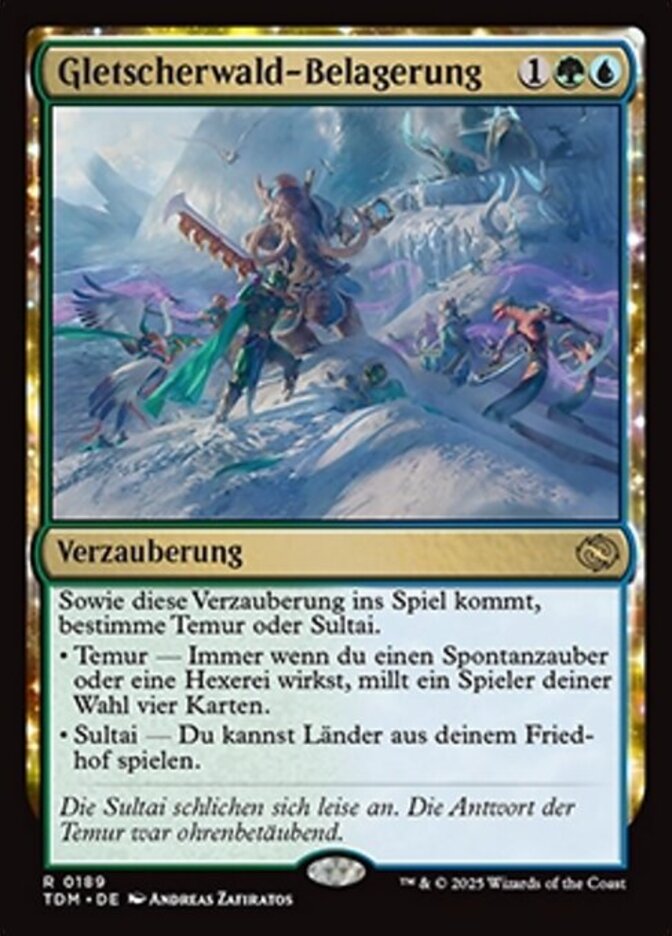 | Rules | As this enchantment enters, choose Temur or Sultai. • Temur — Whenever you cast an instant or sorcery spell, target player mills four cards. • Sultai — You may play lands from your graveyard. |
