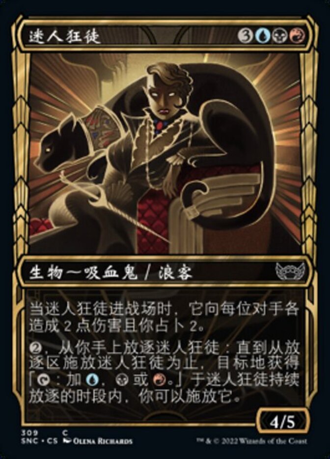 | Rules | When Glamorous Outlaw enters the battlefield, it deals 2 damage to each opponent and you scry 2. , Exile Glamorous Outlaw from your hand: Target land gains ": Add , , or " until Glamorous Outlaw is cast from exile. You may cast Glamorous Outlaw for as long as it remains exiled. |