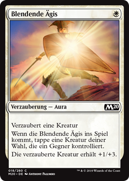 | Rules | Enchant creature When Glaring Aegis enters the battlefield, tap target creature an opponent controls. Enchanted creature gets +1/+3. |