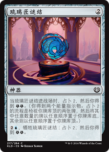 | Rules | When Glassblower's Puzzleknot enters the battlefield, scry 2, then you get . (You get two energy counters. To scry 2, look at the top two cards of your library, then put any number of them on the bottom of your library and the rest on top in any order.) , Sacrifice Glassblower's Puzzleknot: Scry 2, then you get . |