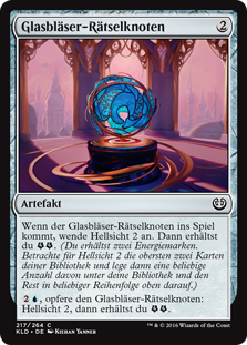 | Rules | When Glassblower's Puzzleknot enters the battlefield, scry 2, then you get . (You get two energy counters. To scry 2, look at the top two cards of your library, then put any number of them on the bottom of your library and the rest on top in any order.) , Sacrifice Glassblower's Puzzleknot: Scry 2, then you get . |