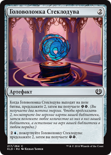| Rules | When Glassblower's Puzzleknot enters the battlefield, scry 2, then you get . (You get two energy counters. To scry 2, look at the top two cards of your library, then put any number of them on the bottom of your library and the rest on top in any order.) , Sacrifice Glassblower's Puzzleknot: Scry 2, then you get . |