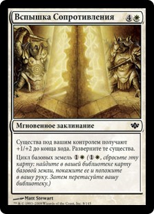 | Rules | Creatures you control get +1/+2 until end of turn. Untap those creatures. Basic landcycling (, Discard this card: Search your library for a basic land card, reveal it, put it into your hand, then shuffle.) |