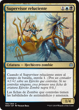 | Rules | When Gleaming Overseer enters the battlefield, amass 1. (Put a +1/+1 counter on an Army you control. If you don't control one, create a 0/0 black Zombie Army creature token first.) Zombie tokens you control have hexproof and menace. |