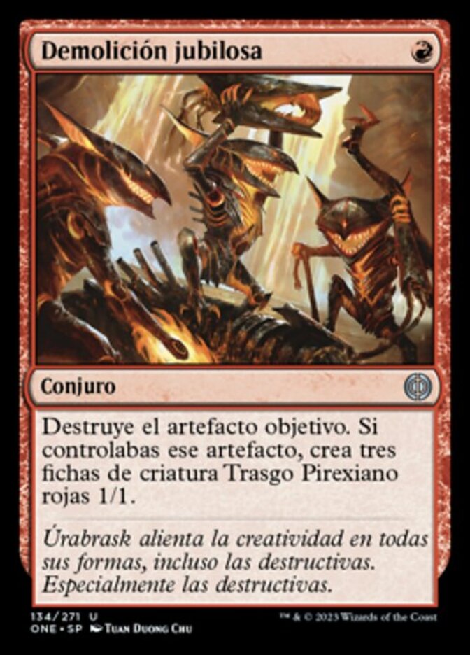 | Rules | Destroy target artifact. If you controlled that artifact, create three 1/1 red Phyrexian Goblin creature tokens. |