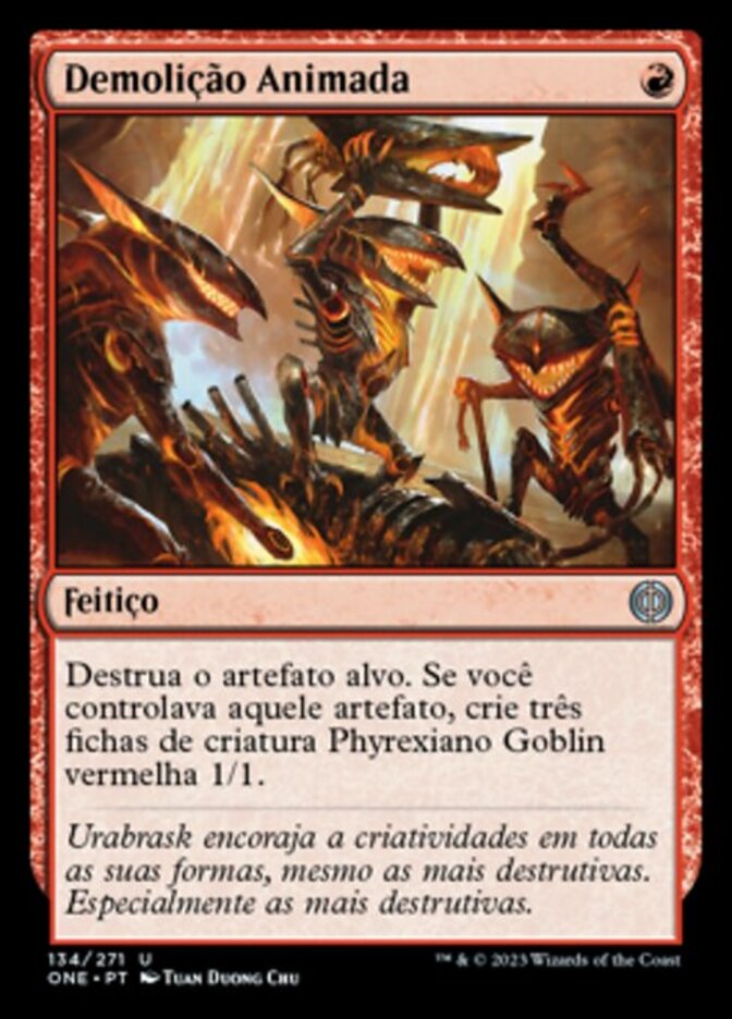 | Rules | Destroy target artifact. If you controlled that artifact, create three 1/1 red Phyrexian Goblin creature tokens. |