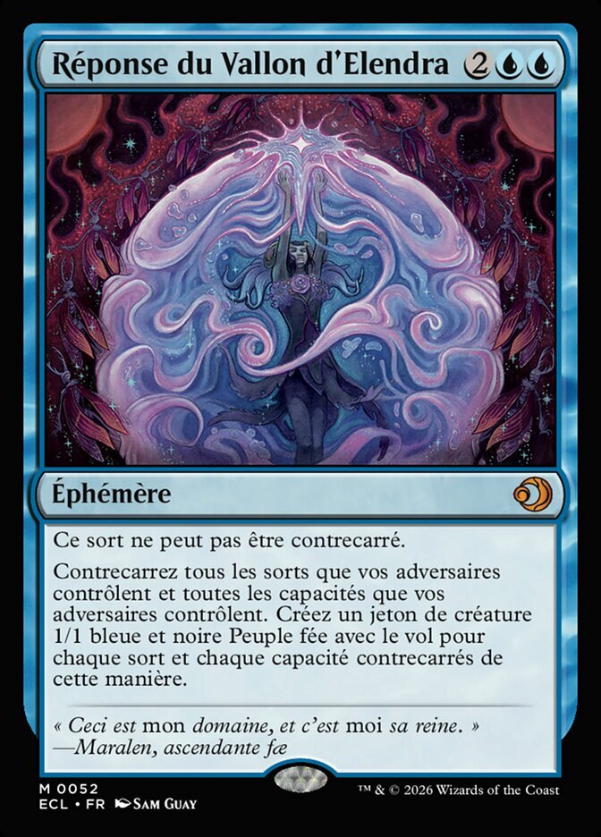 | Rules | This spell can't be countered. Counter all spells your opponents control and all abilities your opponents control. Create a 1/1 blue and black Faerie creature token with flying for each spell and ability countered this way. |