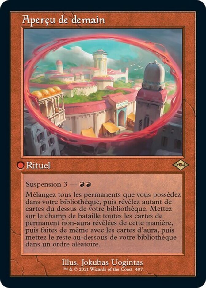 | Rules | Suspend 3— Shuffle all permanents you own into your library, then reveal that many cards from the top of your library. Put all non-Aura permanent cards revealed this way onto the battlefield, then do the same for Aura cards, then put the rest on the bottom of your library in a random order. |
