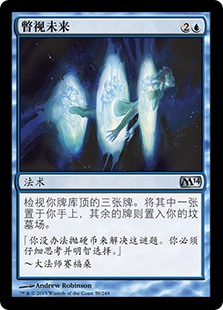 | Rules | Look at the top three cards of your library. Put one of them into your hand and the rest into your graveyard. |