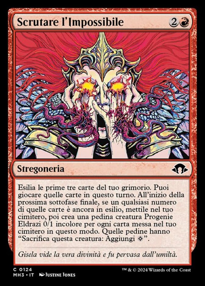 | Rules | Exile the top three cards of your library. You may play those cards this turn. At the beginning of the next end step, if any of those cards remain exiled, put them into your graveyard, then create a 0/1 colorless Eldrazi Spawn creature token for each card put into your graveyard this way. Those tokens have "Sacrifice this creature: Add ." |