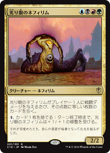 | Rules | Whenever Glint-Eye Nephilim deals combat damage to a player, draw that many cards. , Discard a card: Glint-Eye Nephilim gets +1/+1 until end of turn. |
