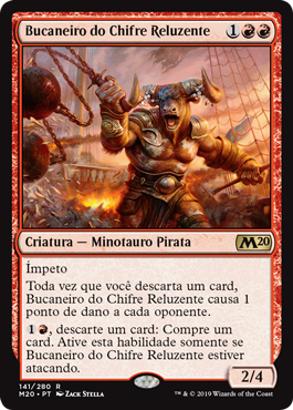 | Rules | Haste Whenever you discard a card, Glint-Horn Buccaneer deals 1 damage to each opponent. , Discard a card: Draw a card. Activate only if Glint-Horn Buccaneer is attacking. |