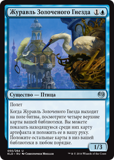 | Rules | Flying When Glint-Nest Crane enters the battlefield, look at the top four cards of your library. You may reveal an artifact card from among them and put it into your hand. Put the rest on the bottom of your library in any order. |