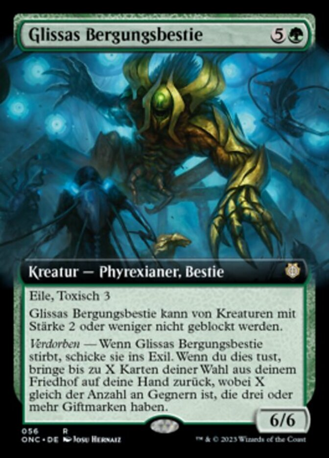 | Rules | Haste, toxic 3 (Players dealt combat damage by this creature also get three poison counters.) Glissa's Retriever can't be blocked by creatures with power 2 or less. Corrupted — When Glissa's Retriever dies, exile it. When you do, return up to X target cards from your graveyard to your hand, where X is the number of opponents who have three or more poison counters. |