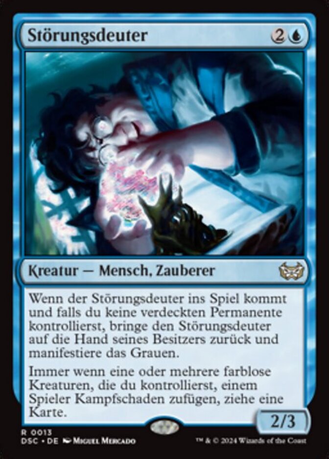 | Rules | When Glitch Interpreter enters, if you control no face-down permanents, return Glitch Interpreter to its owner's hand and manifest dread. Whenever one or more colorless creatures you control deal combat damage to a player, draw a card. |