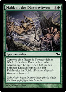 | Rules | Destroy target creature with flying. If that creature was blue or black, create a 1/2 green Spider creature token with reach. (It can block creatures with flying.) |