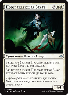 | Rules | Pay 2 life: Glorifier of Dusk gains flying until end of turn. Pay 2 life: Glorifier of Dusk gains vigilance until end of turn. |