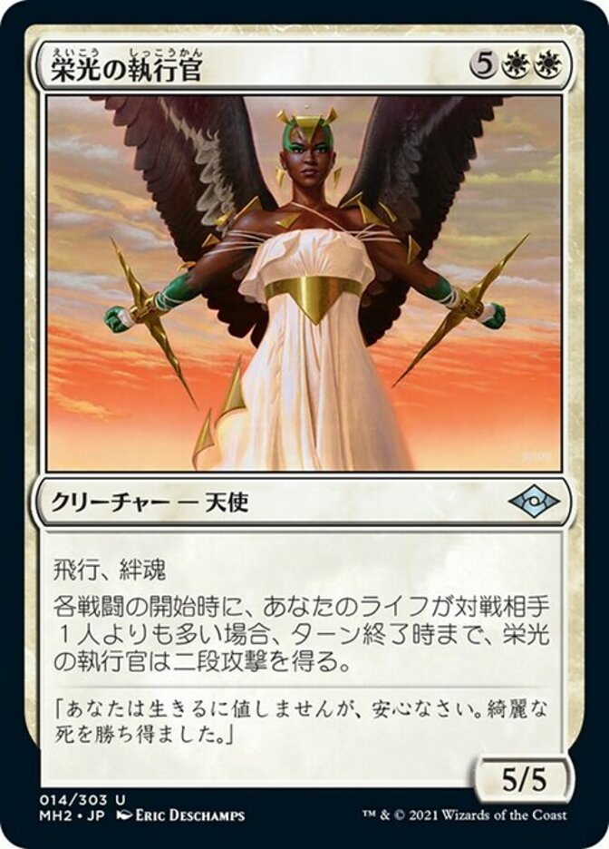 | Rules | Flying, lifelink At the beginning of each combat, if you have more life than an opponent, Glorious Enforcer gains double strike until end of turn. |