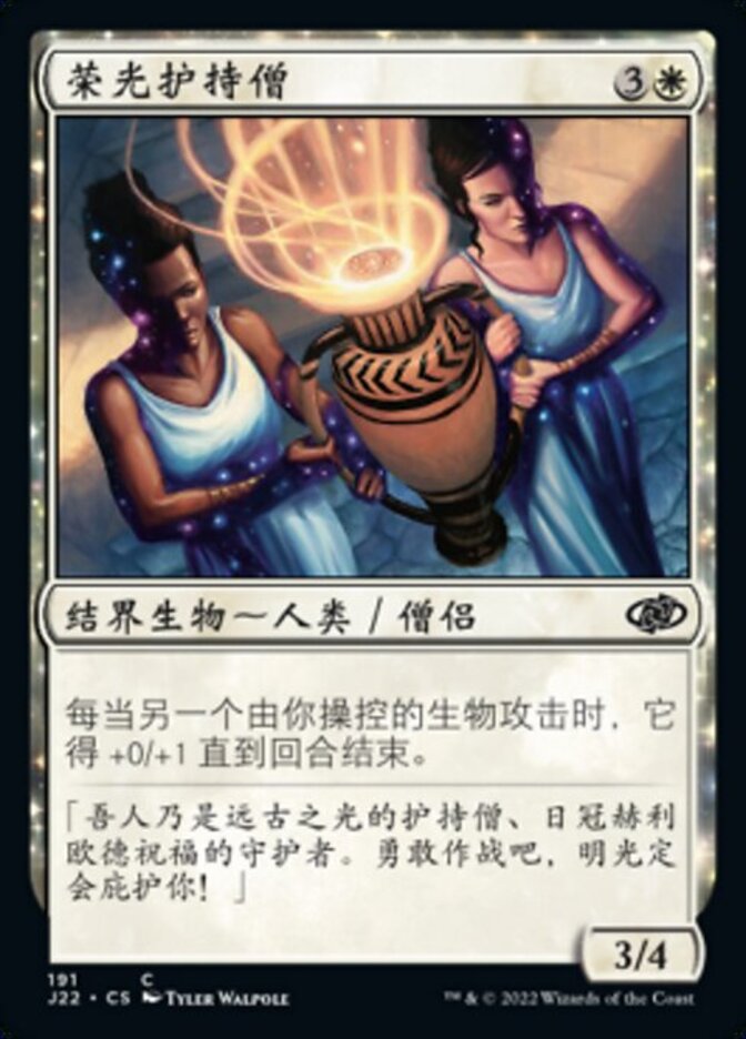 | Flavor | "We are bearers of the ancient light, keepers of sun-crowned Heliod's blessings. Fight, and the light will protect you!" |